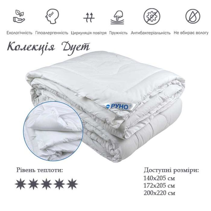 Характеристики Руно Дует 4 сезони 172x205 біле (316.52ДУЭТ)