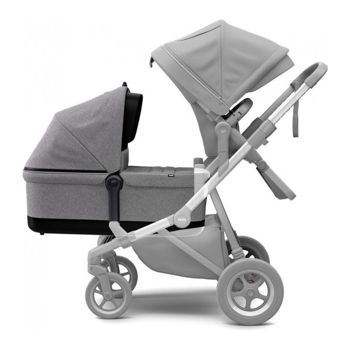 Thule Sleek Bassinet перетворює коляску Thule Sleek на коляску-люльку, якщо в сім'ї буде наступне поповнення, і, якщо потрібно, дозволить розмістити відразу двох малюків.