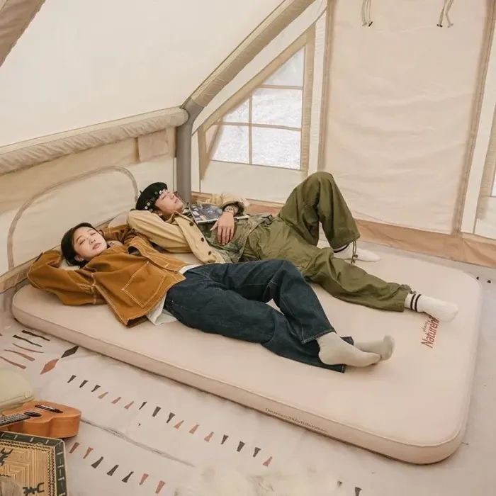 Подвійний матрац Naturehike NH21FCD11 бежевий — це простий у використанні аксесуар, який допомагає підняти комфорт відпочинку на новий рівень. Завдяки м'якості, а також повітро- та водонепроникності модель дозволяє користувачеві максимально розслабитися під час сну, уникнувши переохолодження. Матрац виготовлений із ряду функціональних матеріалів, кожен із яких виконує окрему функцію. Верхня сторона пошита з еластичної синтетичної тканини щільністю 30D, яка характеризується зносостійкістю та має м'яку, шорстку поверхню.