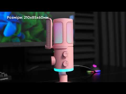 конденсаторний, Призначення - для комп'ютерів, вокальні, для стримінгу, кардіоїд, USB Type-C, 3.5 мм mini-jack, - 42 дБ ± 3 дБ, 70 – 20000 Гц, 5V DC, 2 м, рожевий