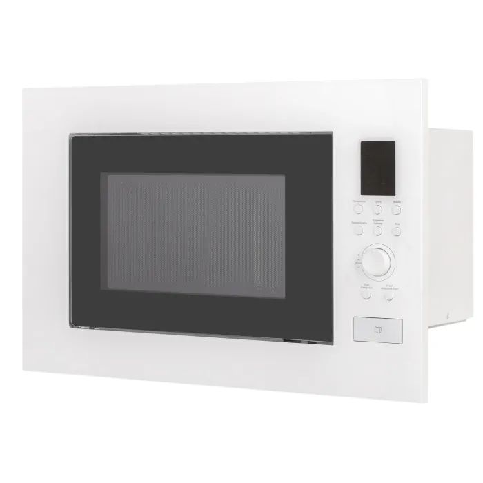 Тип - з грилем, вбудована, об'єм - 25 л, потужність НВЧ - 900 Вт, потужність гриля - 1000 Вт, тип керування - електронний, дисплей - так, автовідключення, блокування роботи при відкритих дверцятах, діаметр поворотного піддону - 270 мм, підсвічування камери, таймер, Ширина - 59.5 см, Глибина - 38.1 см, Висота - 39 см, вага - 15.3 кг, білий