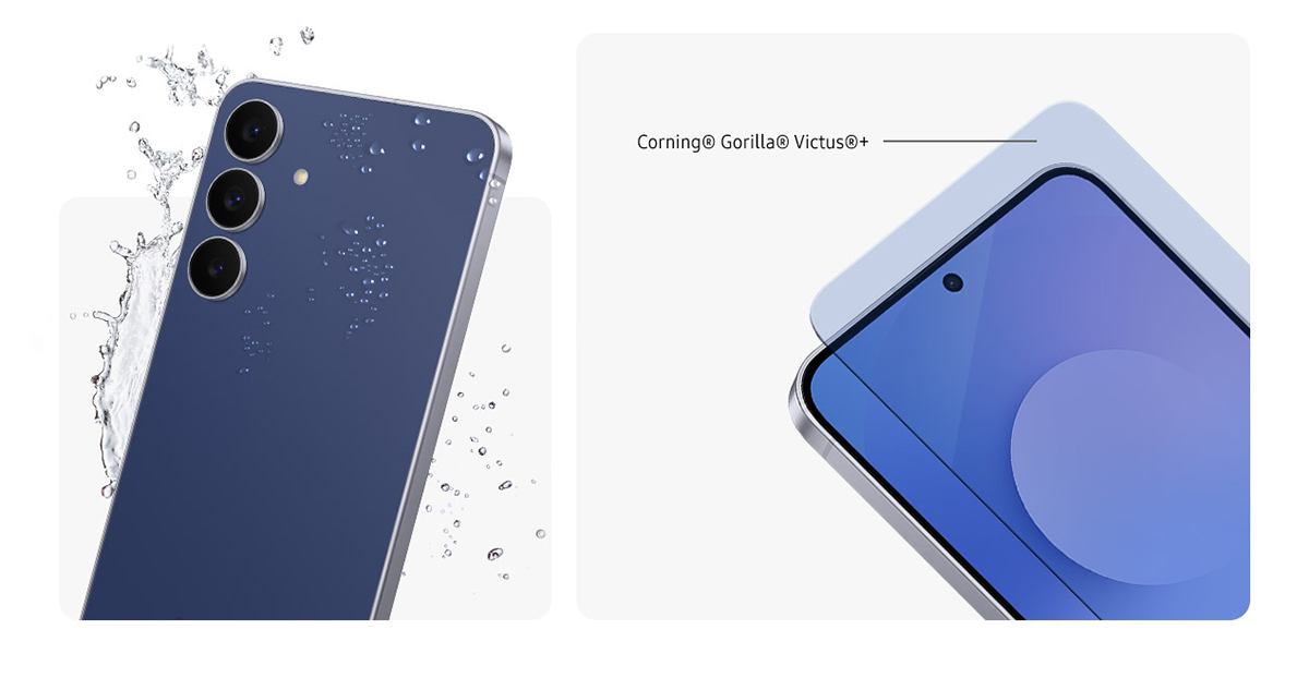 Galaxy S25 FE, захищений склом Corning Gorilla Glass Victus+ та посиленою алюмінієвою рамкою Armor Aluminum, виготовлений з такого самого міцного та високоякісного матеріалу, як і Galaxy S25 та S25+. Він також має захист від пилу та води за стандартом IP68, тож ви можете з упевненістю вирушати у свою наступну пригоду.