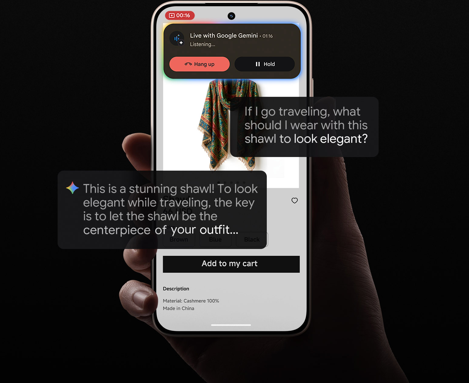 Обведи предмет на фото, про який ти хочеш знати більше, і вдосконалений алгоритм пошуку Google надасть корисну інформацію, що тебе цікавить. Зробити замовлення в кафе в іншій країні або запитати дорогу більше не проблема — з цим легко справляється Перекладач на ШІ. Точніше сформулювати думку в коментарях допоможе інструмент роботи з текстами на ШІ. Шукай пам'ятки, плануй вихідні, створюй зображення та дізнавайся нові рецепти — з усім тобі допоможе Google Gemini.