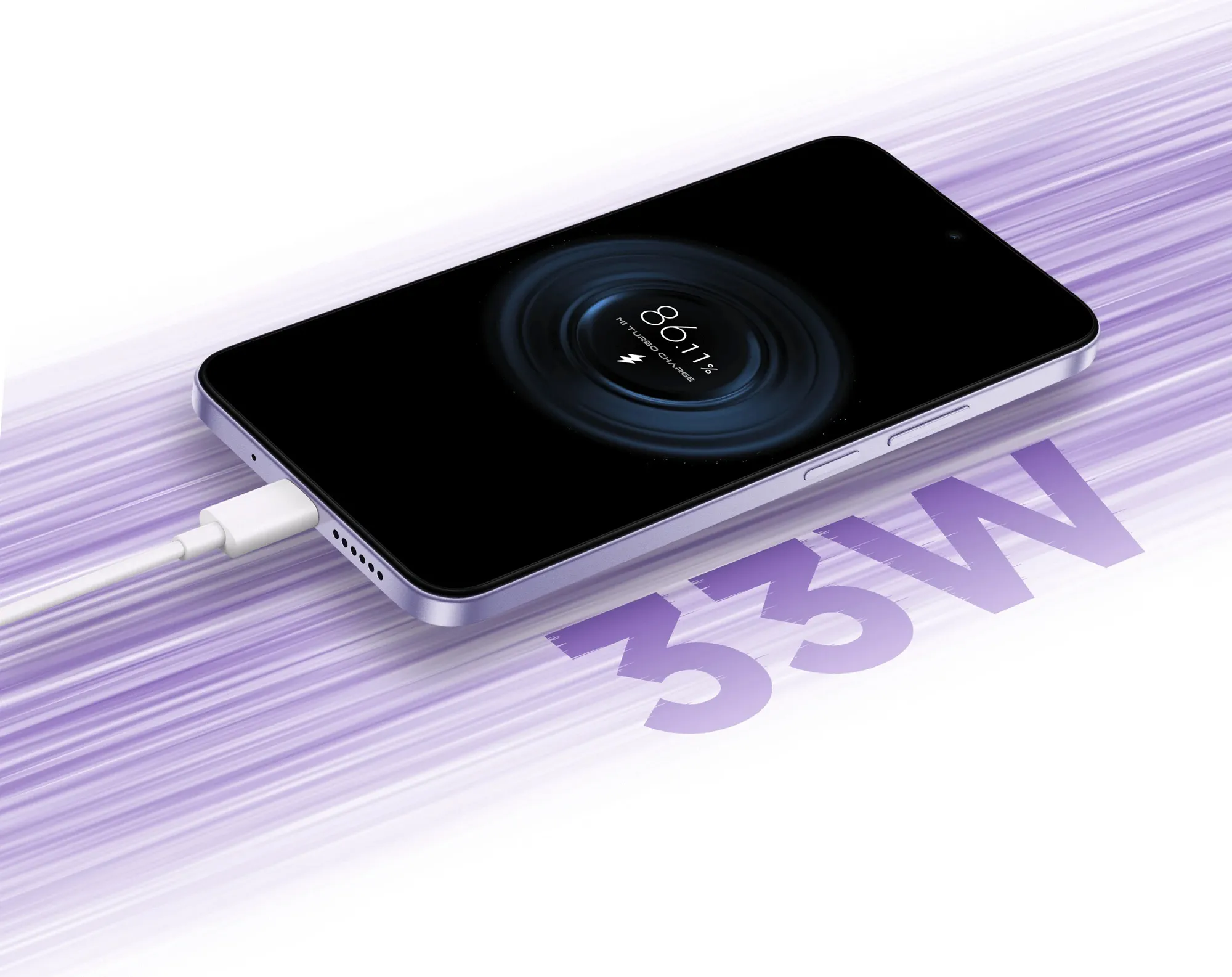 Турбозарядка потужністю 33 Вт забезпечує ідеальний баланс між швидким поповненням енергії та тривалим часом автономної роботи, що дозволяє тобі залишатися на зв'язку без зайвих турбот. Підтримка зворотної зарядки потужністю 18 Вт перетворює твій смартфон на портативний зовнішній акумулятор. Усього за 10 хвилин зворотної підзарядки можна забезпечити до 37 хвилин перегляду відео або до 64 хвилин розмов для іншого пристрою.