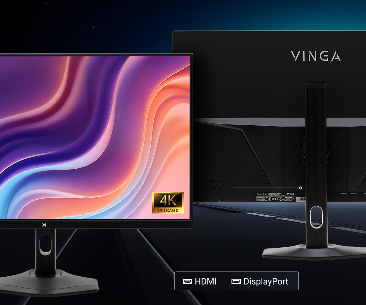 Vinga 27S406-11B пропонує різноманітність підключень з двома портами DisplayPort та двома HDMI, що робить його сумісним з будь-якими сучасними пристроями та платформами. А з вмонтованими колонками 2 х 2 Вт ви зможете насолоджуватися аудіо без додаткових компонентів.