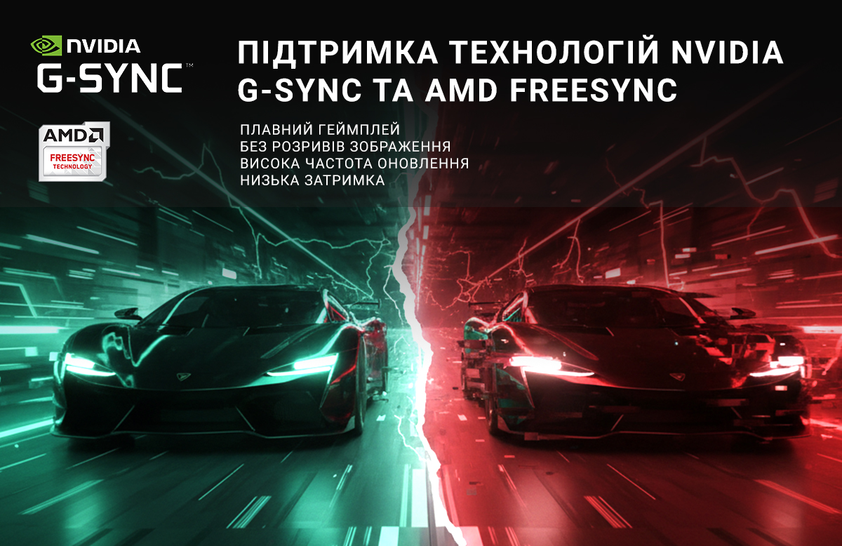 Для досягнення ідеальної плавності монітор підтримує передові технології синхронізації NVIDIA G-SYNC та AMD FreeSync. Вони забезпечують динамічне узгодження частоти оновлення екрана з кількістю кадрів, які видає відеокарта. Це повністю усуває розриви зображення, відомі як терінг, та мінімізує затримки введення. Геймери отримають бездоганний візуальний досвід навіть у найбільш ресурсомістких іграх, де кожен кадр має значення для перемоги та загального занурення в ігрову атмосферу.