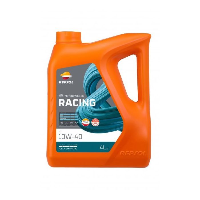 REPSOL RACING 4T 5W-40 - Високопродуктивна олія для чотирьохтактних двигунів спортивних та дорожніх мотоциклів, у тому числі з інтегрованими коробками передач. Виготовляється з використанням унікального комплексу присадок, завдяки яким повністю відповідає вимогам допусків API SN та JASO MA2. Олія Repsol RACING 4T 10W-40 відрізняється чудовою стійкістю до високотемпературного впливу, завдяки чому підтримує цілісність та оптимальну товщину мастильної плівки в умовах високих оборотів та на високих швидкостях, надійно захищаючи деталі двигуна від зносу та механічних пошкоджень, продовжуючи безвідмовний. Містить відмінні антифрикційні присадки, які знижують коефіцієнт тертя, сприяють досягненню максимальної продуктивності двигуна та покращують динаміку розгону.