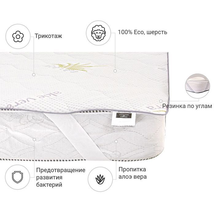 Завдяки просоченню алое вера наматрацник має вентилювальні, антибактеріальні, пом'якшувальні, регенерувальні та заспокійливі властивості, що створить комфортні умови для вашого сну.
