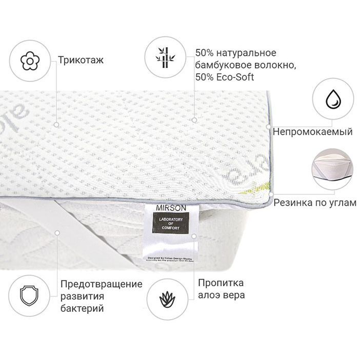 Це новинка від компанії MirSon! Наматрацники з цієї серії мають високу практичність і зносостійкість. Їхній чохол зроблений з еластичного та довговічного матеріалу — трикотажу. Він не тільки ніжний і приємний до тіла, але й добре циркулює повітря, завдяки чому не створюється парниковий ефект! Простирадло на такому наматрацнику добре кріпиться, не совається й не сповзає під час сну.