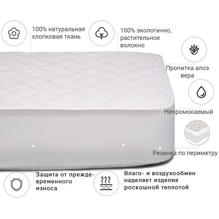 Наматрацники з бавовни цінують за їхню м'якість, тепло та здатність убирати надлишки вологи. Бавовна — це практичний натуральний наповнювач, він має багато цінних якостей: легкий, ніжний, приємний на дотик, гіпоалергенний, забезпечує терморегуляцію і гігроскопічність, не електризується.
