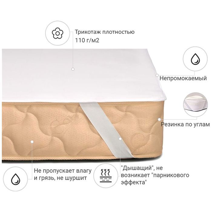 Розмір - 70 x 140 см, кріплення - з гумкою на кутках, наповнювач - без наповнювача, трикотажна тканина, Колір - білий