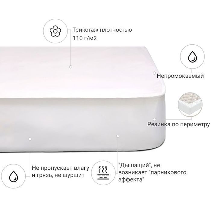Розмір - 100 x 200 см, кріплення - з гумкою на кутках, наповнювач - без наповнювача, трикотажна тканина, Колір - білий