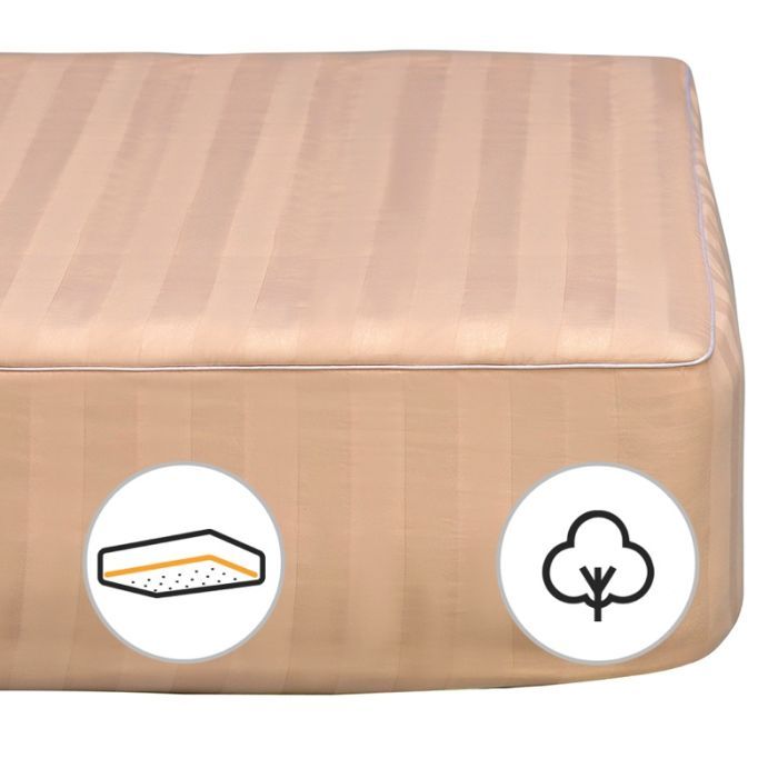 Розмір - 60 x 120 см, кріплення - з гумкою уздовж периметру, наповнювач - бавовна, сатин жакард + мікросатин, Колір - шампань