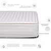 Наматрацник не пропускає бруд і здатний утримувати до 0,5 л води (завдяки чому ваш матрац завжди залишатиметься сухим і чистим!). І, на відміну від інших непромокальних наматрацників, він практично не шарудить завдяки еластичній непромокальній мембрані.