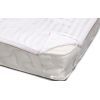 Наматрацник на гумці з високоякісної італійської тканини класу "DeLuxe". Тканина має назву "Сатин-страйп Італія", яка є довговічною, складається виключно зі 100% високоякісного бавовняного волокна. Сатинова тканина чохла має складне, жакардове переплетення, що надає наматрацнику не тільки високоестетичну вишуканість, але і збільшує міцність тканини загалом. Наматрацник не пропускає бруд і здатний утримувати до 0,5 л води. І, на відміну від інших непромокальних наматрацників, він практично не шарудить завдяки еластичній непромокальній мембрані.
