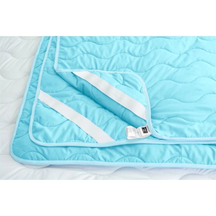 Розмір - 200 x 200 см, тканина - мікросатин, кріплення - з гумкою на кутках, наповнювач - шовк: 30%, антиалергенне штучне шовкове волокно: 70%, мікросатин, Колір - блакитний