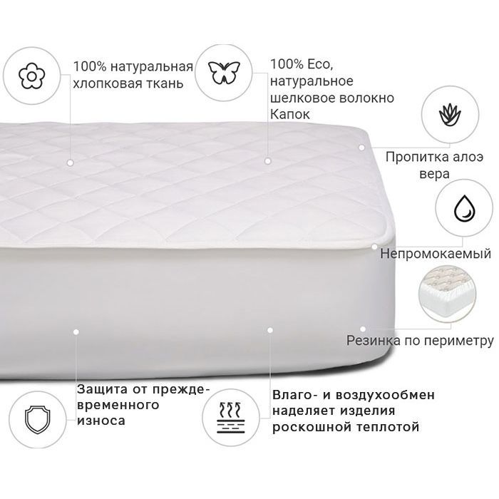 Розмір - 90 x 200 см, кріплення - з гумкою уздовж периметру, наповнювач - шовк: 30%, антиалергенне штучне шовкове волокно: 70%, 100% бавовна, Колір - білий