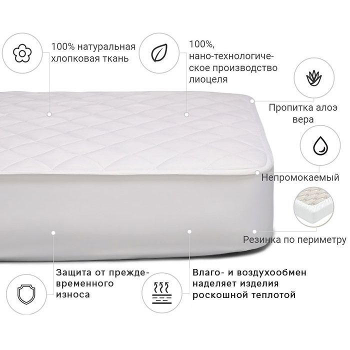 Розмір - 60 x 120 см, кріплення - з гумкою уздовж периметру, наповнювач - modal (натуральне волокно целюлози) 50%, поліефірний розпушувач 50%, 100% бавовна, Колір - білий