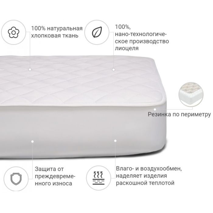Розмір - 180 x 200 см, кріплення - з гумкою уздовж периметру, наповнювач - modal (натуральне волокно целюлози) 50%, поліефірний розпушувач 50%, 100% бавовна, Колір - білий