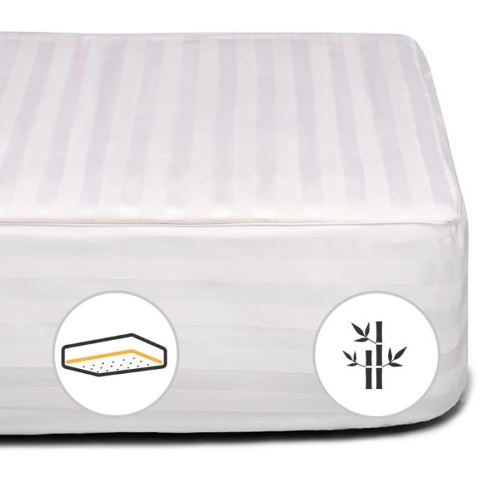 Розмір - 90 x 200 см, кріплення - з гумкою уздовж периметру, наповнювач - бамбукове волокно: 50%, поліефірний розпушувач: 50%, сатин жакард + мікросатин, Колір - білий