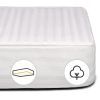 З іншого боку наматрацник виготовлений з італійського мікросатину, до складу якого входить бавовна та поліефірне волокно, яке надає наматрацнику легкості, довговічності.