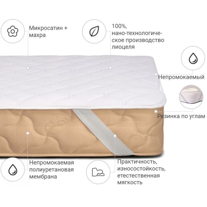 Ми стараємося для Вас! Тому, на численні прохання постійних клієнтів, наші фахівці вивели спеціальну лінію наматрацників для зручності та практичності використання — серія Тенцел двосторонній! Одна сторона наматрацника виготовлена з високоякісної тканини мікросатин — виробництва Італія. Тканина мікросатин — ніжна, приємна на дотик, сатинове плетіння забезпечує довговічність і м'якість усього виробу загалом. Мікросатин подарує благодатну прохолоду спекотним літом, вбираючи зайву вологу. Наматрацник не ковзає по матрацу, добре фіксується. А інша сторона прийме своїми теплими та ніжними дотиками, зігріє благодатним теплом завдяки унікальній непромокальній махровій мембрані. Адже махрова мембрана — вершина гігроскопічності, її використовують для виробництва якісних виробів для наматрацників, які захищають постільну білизну та матрац від забруднень, які продовжують термін експлуатації та перешкоджають проникненню вологи й накопиченню пилу.