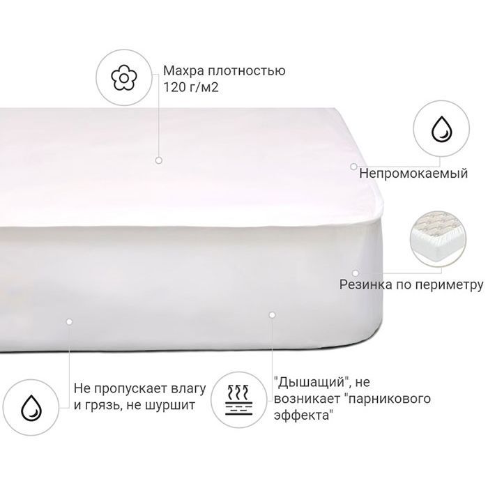 Завдяки унікальній непромокальній махровій мембрані Ви не будете потіти та зможете спокійно насолоджуватися солодкими снами впродовж усієї ночі! Адже махрова мембрана (100% бавовна) — вершина гігроскопічності, її використовують для виробництва якісних виробів для наматрацників, які захищають постільну білизну та матрац від забруднень, продовжують термін експлуатації та перешкоджають проникненню вологи та накопиченню пилу.