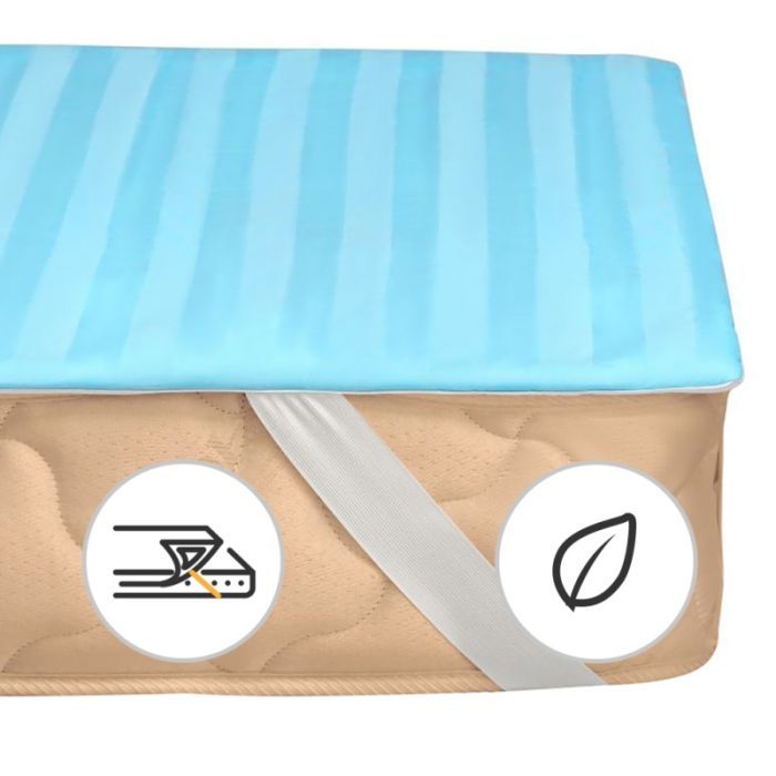 Розмір - 70 x 140 см, кріплення - з гумкою на кутках, наповнювач - modal (натуральне волокно целюлози) 50%, поліефірний розпушувач 50%, сатин жакард + мікросатин, Колір - блакитний