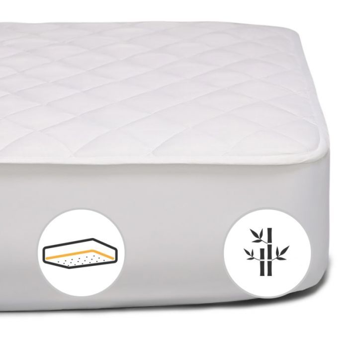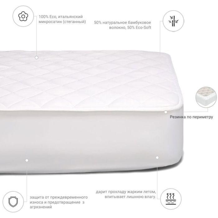 Розмір - 120 x 190 см, кріплення - з гумкою уздовж периметру, наповнювач - бамбукове волокно: 50%, поліефірний розпушувач: 50%, мікросатин, Колір - білий