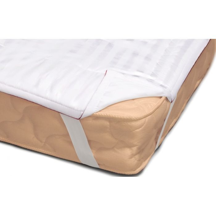 Розмір - 100 x 200 см, кріплення - з гумкою на кутках, наповнювач - 70% бавовна, 30% поліефірний розпушувач, сатин жакард, Колір - білий