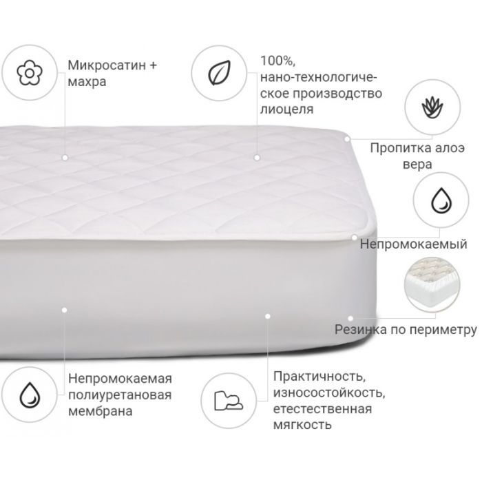 Ми надаємо вам унікальну можливість придбати інноваційний наматрацник із просоченням алое вера! Як відомо, алое вера є адаптогеном — рослиною, що підвищує здатність людини адаптуватися до зовнішніх впливів і чинити опір стресам. Завдяки просоченню алое вера наматрацник має вентилювальні, антибактеріальні, зм'якшувальні, регенерувальні та заспокійливі властивості, що створить комфортні умови для вашого сну. Просочення алое вера має унікальні властивості, і завдяки своїй чудовій властивості проникати в тканини, насичує їх корисними речовинами в процесі виробництва, а також регулює температуру тіла, що дасть змогу вашій шкірі вільно «дихати».