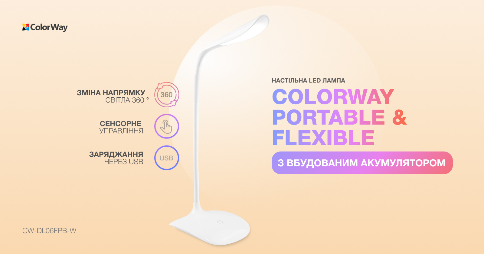 Настільна лампа ColorWay LED Portable & Flexible with built-in accumulator
