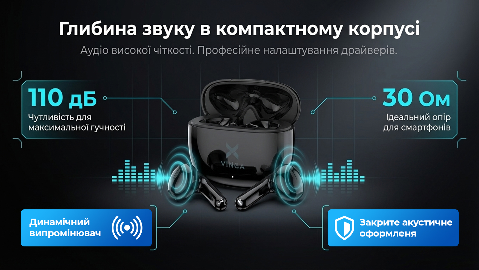 Якість звучання Vinga HBT065 базується на точних інженерних розрахунках та якісних динамічних випромінювачах. Закритий тип акустичного оформлення гарантує глибоке занурення в музику, ефективно відсікаючи зайвий зовнішній шум. Завдяки чутливості 110 дБ та опору 30 Ом, навушники видають потужний і чистий звук при підключенні до будь-якого сучасного гаджета. Широкий частотний діапазон дозволяє почути як насичений бас, так і прозорі високі ноти, розкриваючи повну деталізацію ваших улюблених треків. Це збалансоване поєднання технічної потужності та емоційного задоволення від прослуховування.