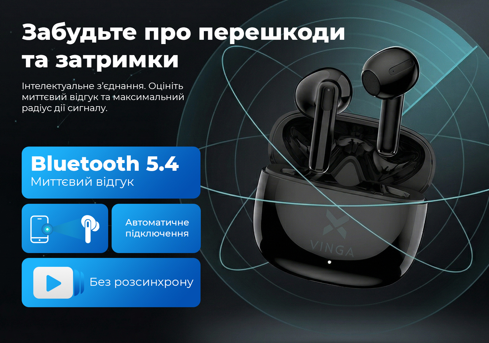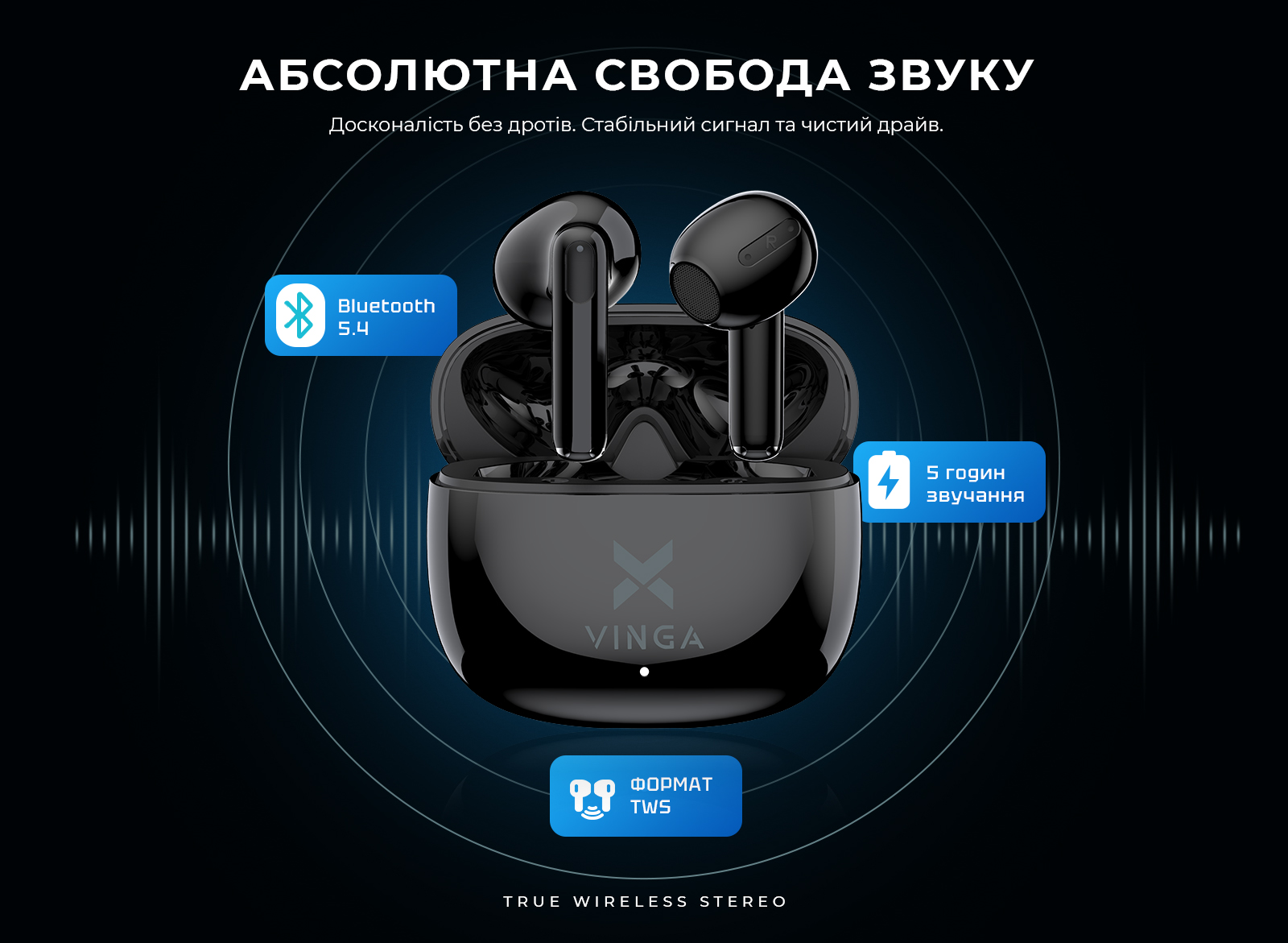 Опис Vinga HBT065 Bluetooth Black (HBT065BK)