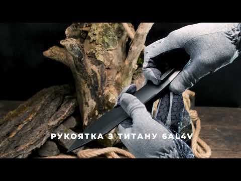 • Руківʼя з титану 6AL4V. Сплав широко застосовується не тільки в ножовій, а й в аерокосмічній та медичній промисловості. У складі є 6% алюмінію та 4% ванадію, які наділяють метал стійкістю до зношування та антикорозійними властивостями. Водночас метал залишається легким, знижуючи вагу інструмента, а сатинова поверхня з дрібними акцентами золотого відтінку привносить ще більше естетики у загальний дизайн.