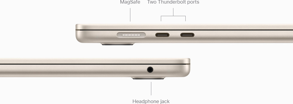 У новому 15-дюймовому MacBook Air більше місця для улюблених речей завдяки великому дисплею Liquid Retina. Оснащені чіпом M3 та забезпечують до 18 годин автономної роботи, обидва ноутбуки забезпечують блискавичну продуктивність в ультрапортативному дизайні.