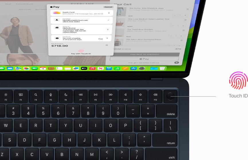 Зручна та тиха клавіатура Magic Keyboard з підсвічуванням оснащена повнорозмірними функціональними клавішами та сенсорним ідентифікатором Touch ID, який дозволяє швидко, легко та безпечно розблокувати комп'ютер Mac та входити у додатки та на сайти – і все це одним дотиком пальця.