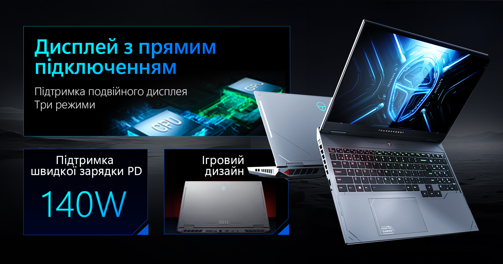 Thunderobot R16 підтримує режим прямого підключення до дискретної відеокарти, що забезпечує максимальну графічну продуктивність без затримок і втрат у візуалізації. Це особливо важливо для геймерів, які прагнуть повного розкриття потенціалу GPU в іграх та під час роботи з 3D-контентом. Завдяки підтримці швидкої зарядки PD до 140 Вт ви отримуєте не лише продуктивний пристрій, а й мобільність без компромісів — зарядка від USB-C дозволяє швидко поповнити енергію в дорозі або під час роботи. Дизайн корпусу з яскравим ігровим характером доповнюється акцентами, що створюють справжній «вигляд геймерської машини».