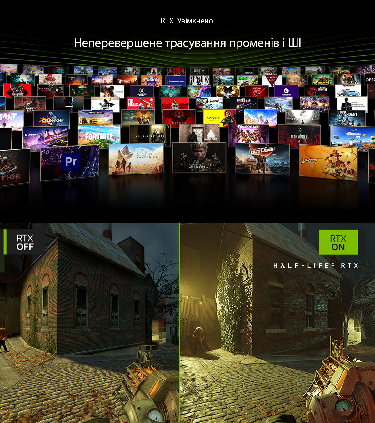 Платформа RTX залишається найдосконалішим рішенням для технологій трасування променів та нейронної візуалізації, революціонізуючи підхід до ігор та створення контенту. Понад 700 провідних ігор та програм вже використовують переваги RTX для забезпечення реалістичної картинки. Висока продуктивність досягається завдяки передовим функціям штучного інтелекту, зокрема технології багатокадрової генерації DLSS Multi Frame Generation.