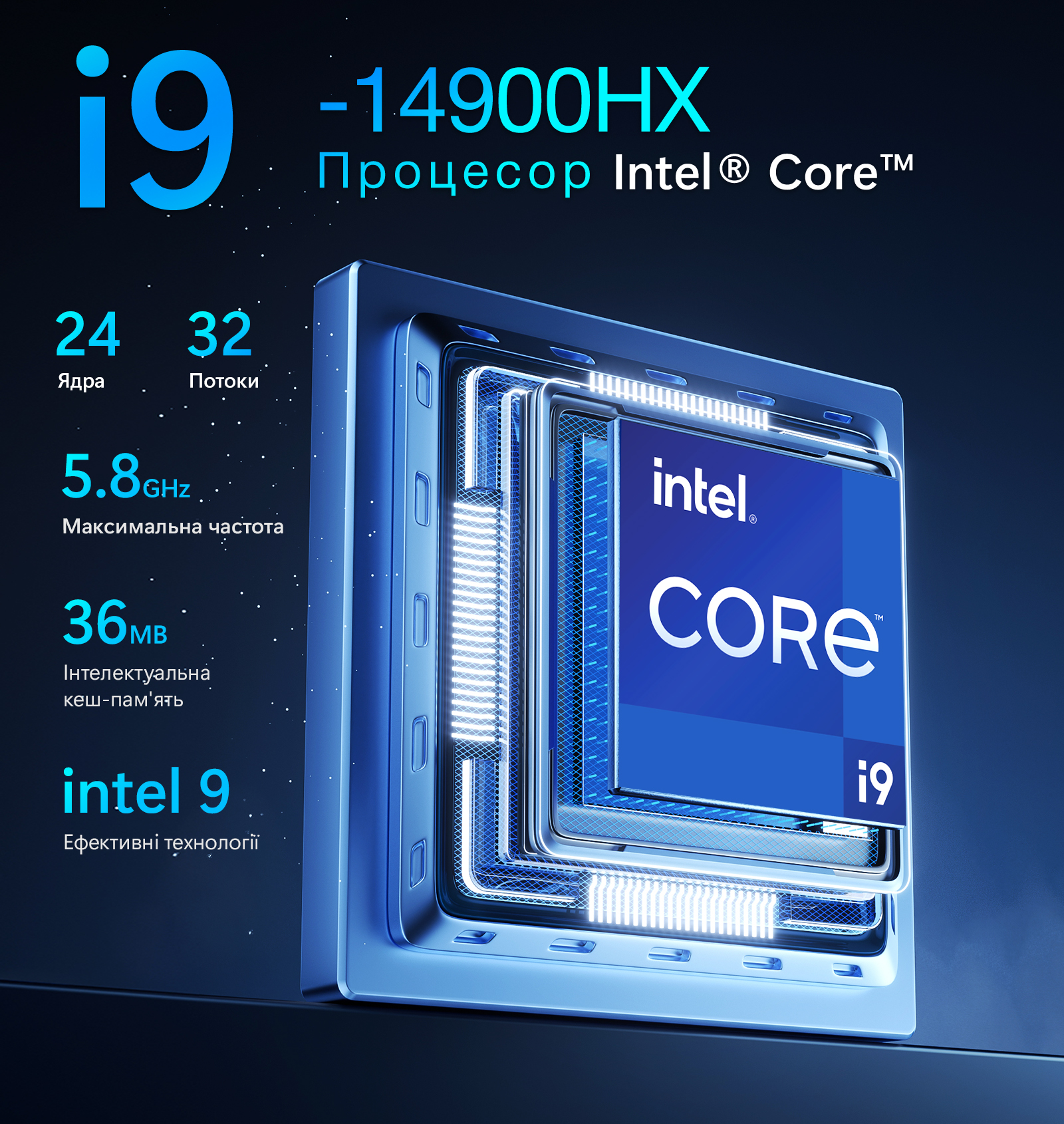 Фундаментом продуктивності ноутбука став процесор Intel Core i9-14900HX, що об'єднує силу 24 ядер та 32 потоків для паралельної обробки даних. Завдяки піковій частоті 5.8 ГГц та 36 МБ інтелектуальної кеш-пам'яті система миттєво реагує на команди в ресурсоємних завданнях. У поєднанні з відеокартою NVIDIA GeForce RTX 5070 на базі пам'яті GDDR7 та технологією DLSS 4, цей AI-ноутбук гарантує стабільний фреймрейт та бездоганну роботу на великому 18-дюймовому екрані.