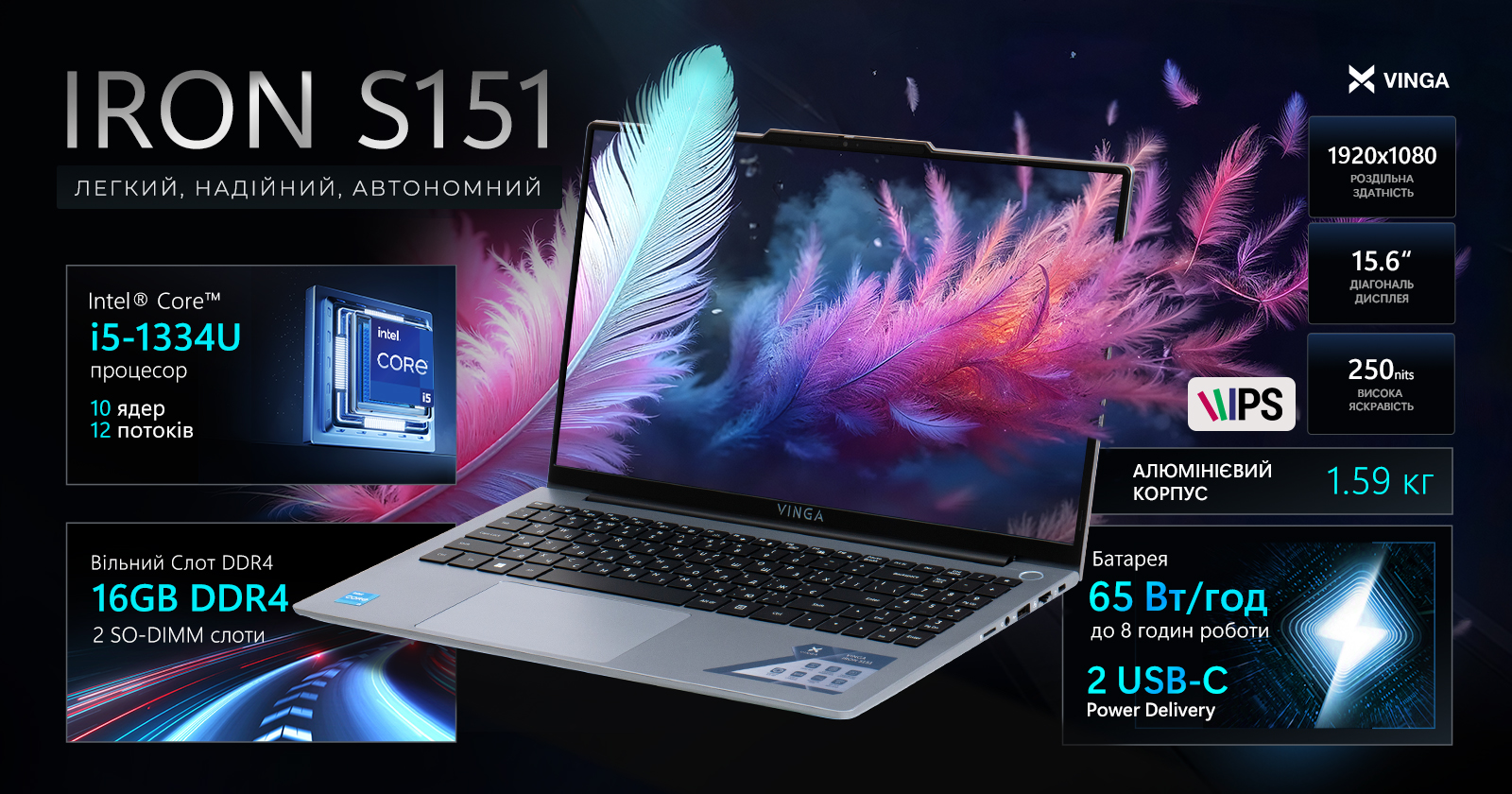 Vinga Iron S151 — це ідеальне поєднання сучасних технологій і вишуканого дизайну. Незалежно від того, чи ви студент, професіонал чи просто шукаєте надійний пристрій для щоденного використання, цей ноутбук стане відмінним вибором, забезпечуючи високу продуктивність та комфорт на кожному кроці.