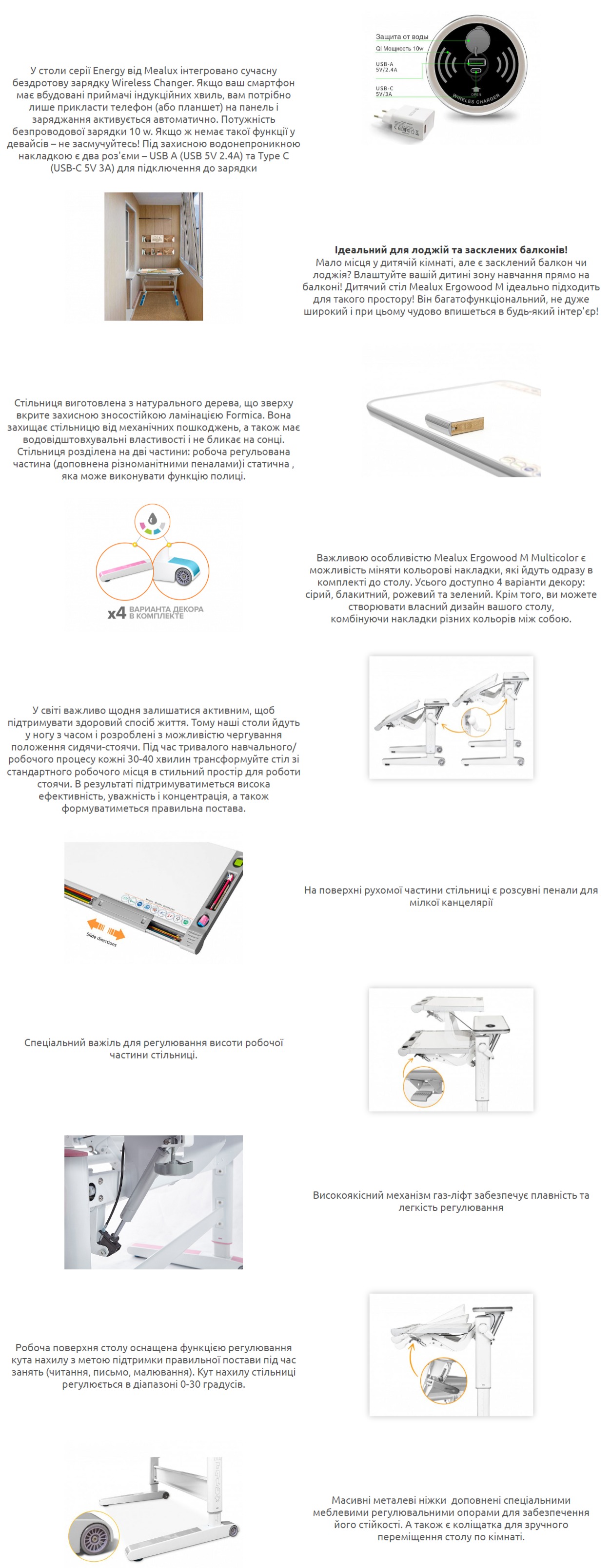 Стіл-трансформер преміумкласу Mealux Ergowood M Multicolor Energy — це унікальне поєднання еталонної якості, сучасного дизайну й багатофункціональності.