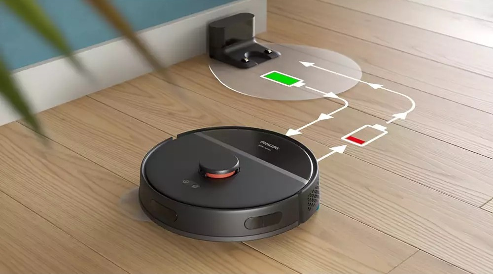 Потужна літій-іонна батарея ємністю 4800 мАгод забезпечує автономну роботу до 200 хвилин, тому від одного заряду можна прибрати до 185 кв. м. Коли батарея розрядиться, робот автоматично повернеться на станцію для заряджання. Щойно батарея зарядиться, він повернеться до місця, де зупинив роботу, щоб відновити прибирання.