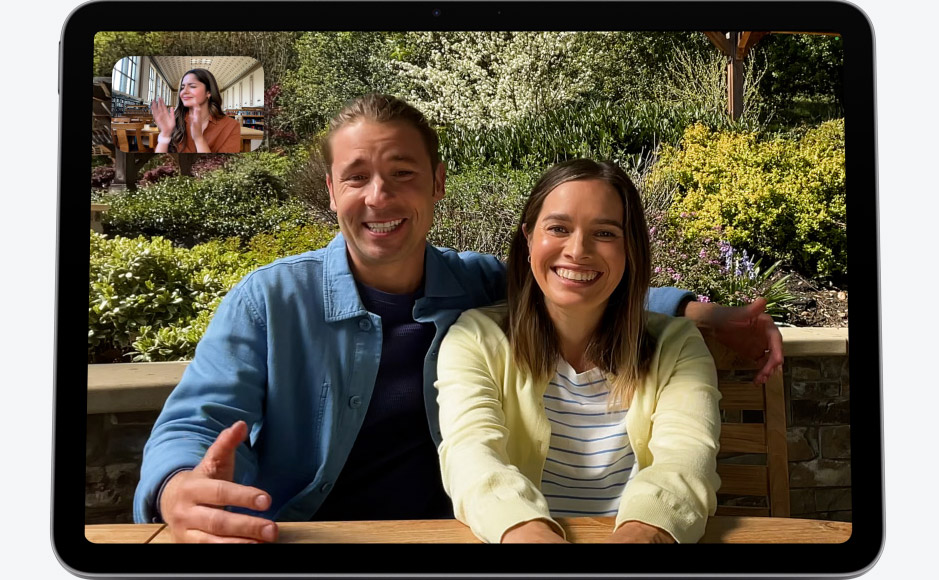 Розташована на фронтальній стороні iPad Air, 12 МП камера Center Stage створює чудовий досвід відеодзвінків. Завдяки машинному навчанню камера автоматично налаштовується, щоб утримувати вас по центру кадру під час відеозв’язку.