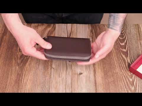 Місткий та функціональний жіночий гаманець з натуральної шкіри. Аксесуар має два відділення для купюр, вісім осередків для карток (одна під сіточкою), чотири прилеглі кишені та монетницю. Закривається аксесуар навпіл на кнопку. Купуючи шкіряний аксесуар цієї фірми собі або на подарунок, будьте певні, що він радуватиме око не один рік.