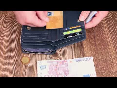 Практичний жіночий гаманець із натуральної шкіри. Аксесуар має два відділення для купюр, вісім осередків для карток (одна під сіточкою), чотири прилеглі кишені та монетницю. Закривається аксесуар навпіл на кнопку. Купуючи шкіряний аксесуар цієї фірми собі або на подарунок, будьте певні, що він радуватиме око не один рік.