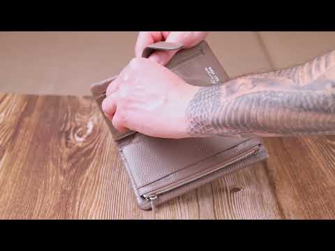 Стильний гаманець з натуральної зернистої шкіри, у бежевому кольорі.