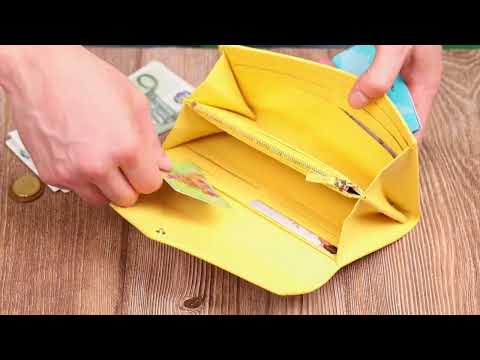 Аксесуар складається з двох широких відділень для купюр, дванадцяти осередків для пластикових карток, двох прилеглих кишень та монетниці на блискавці.
