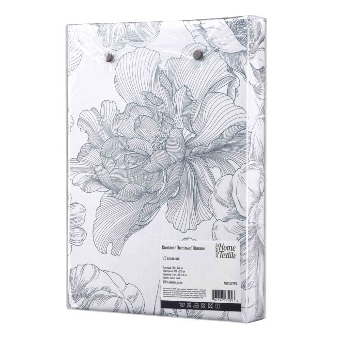 полуторний євро, Простирадло - 160 х 220 см, Підковдра - 160 x 220 см, Наволочка - 50 х 70 см, сатин, бавовна 100%, 1 шт., 2 шт., з квітковим принтом, фірмова упаковка, на блискавці, синій із сірим