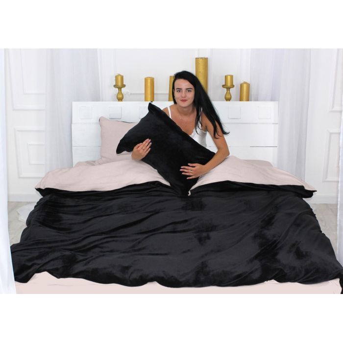 King Size, Простирадло - 180 х 200 + 25 см, махра, велюр, однотонні моделі, підковдра на змійці, простирадло на гумці, чорно-рожевий